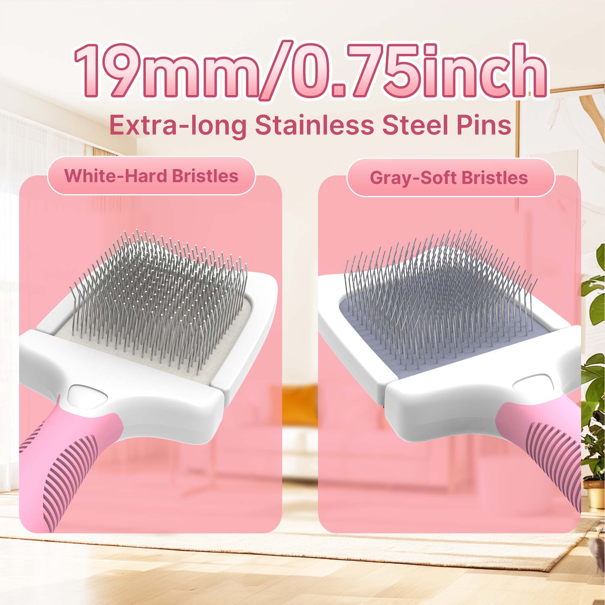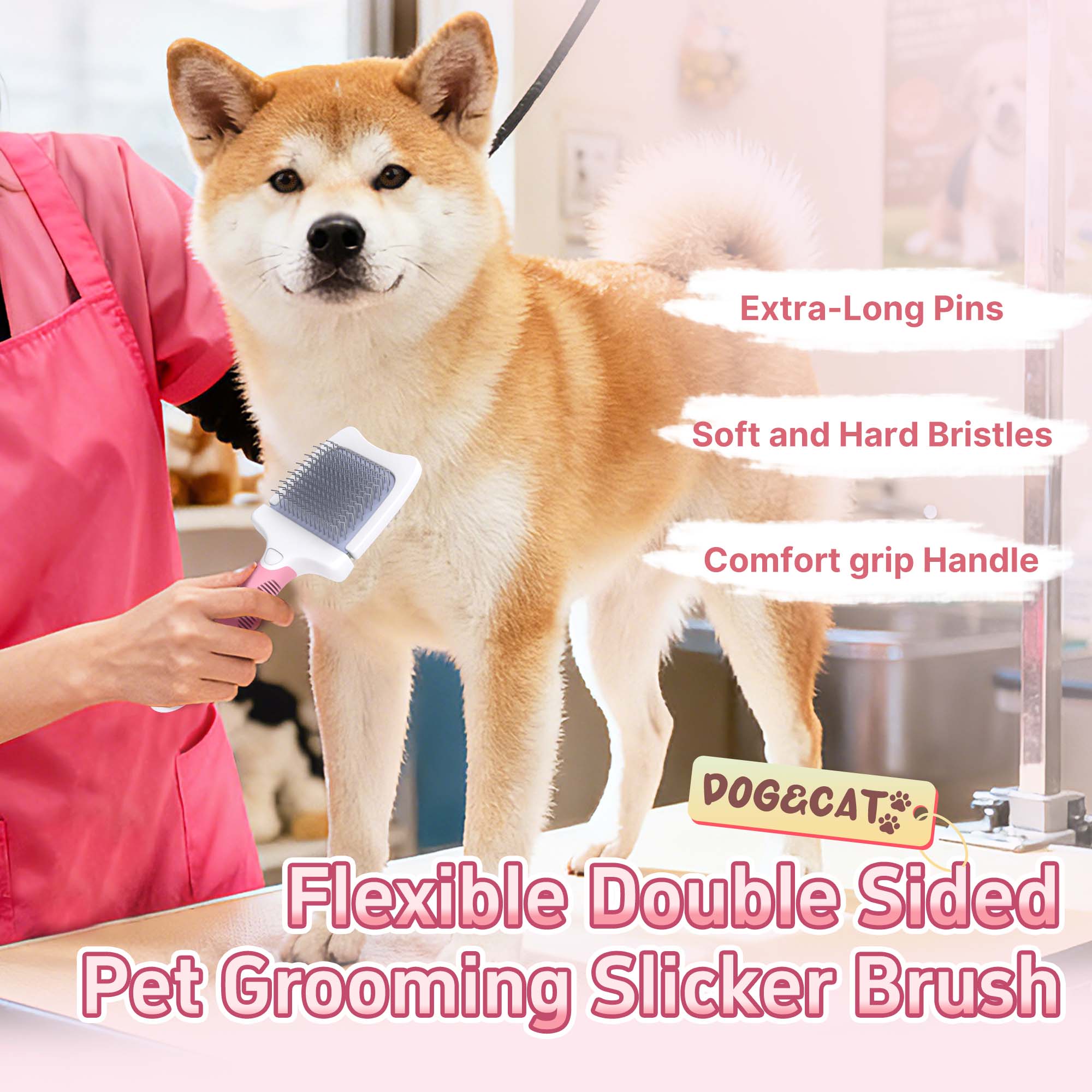Double-Sided Design: Offers dual bristle options for efficient pet grooming.