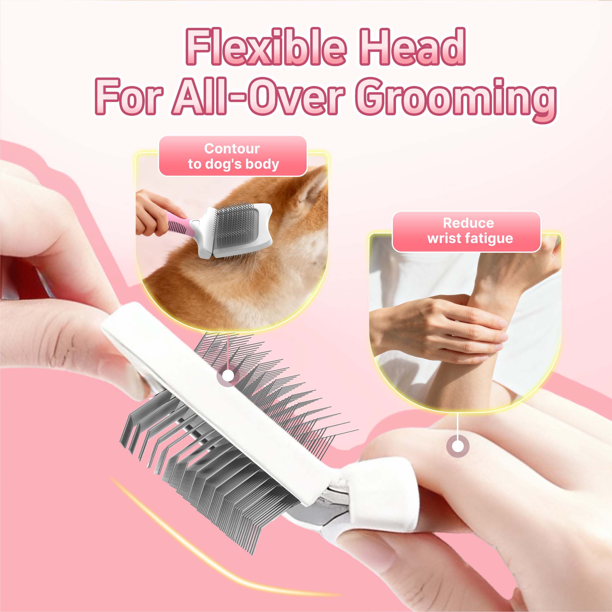 Flexible Head: Adaptively contours to the pet’s body for comprehensive grooming.