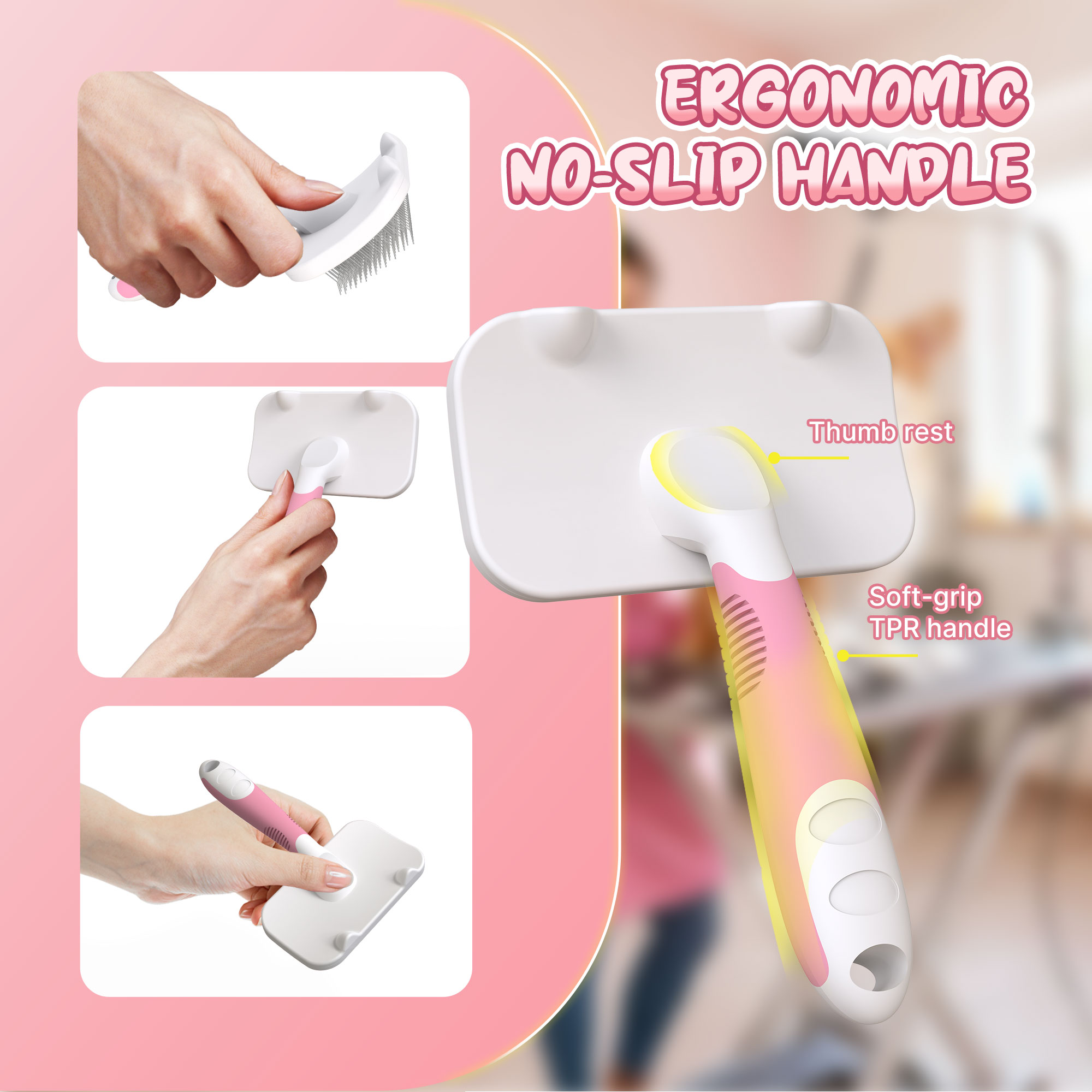 *The dog slicker brush not only gently removes loose fur, mats, tangles, and dirt from your pet’s coat. But also massages your pet, which enhances blood circulation for healthy living.